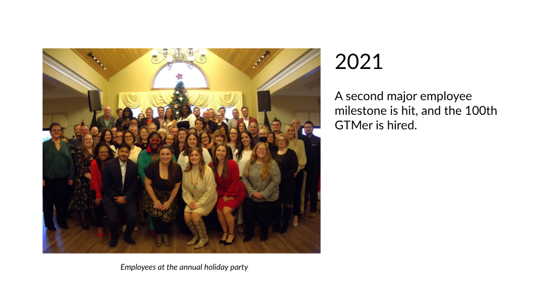 A second major employee milestone is hit, and the 100th GTMer is hired.
