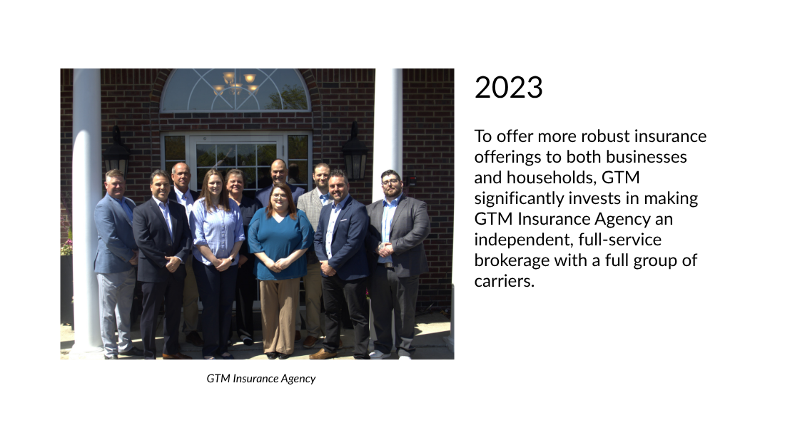 To offer more robust insurance offerings to both businesses and households, GTM significantly invests in making GTM Insurance Agency an independent, full-service brokerage with a full group of carriers.