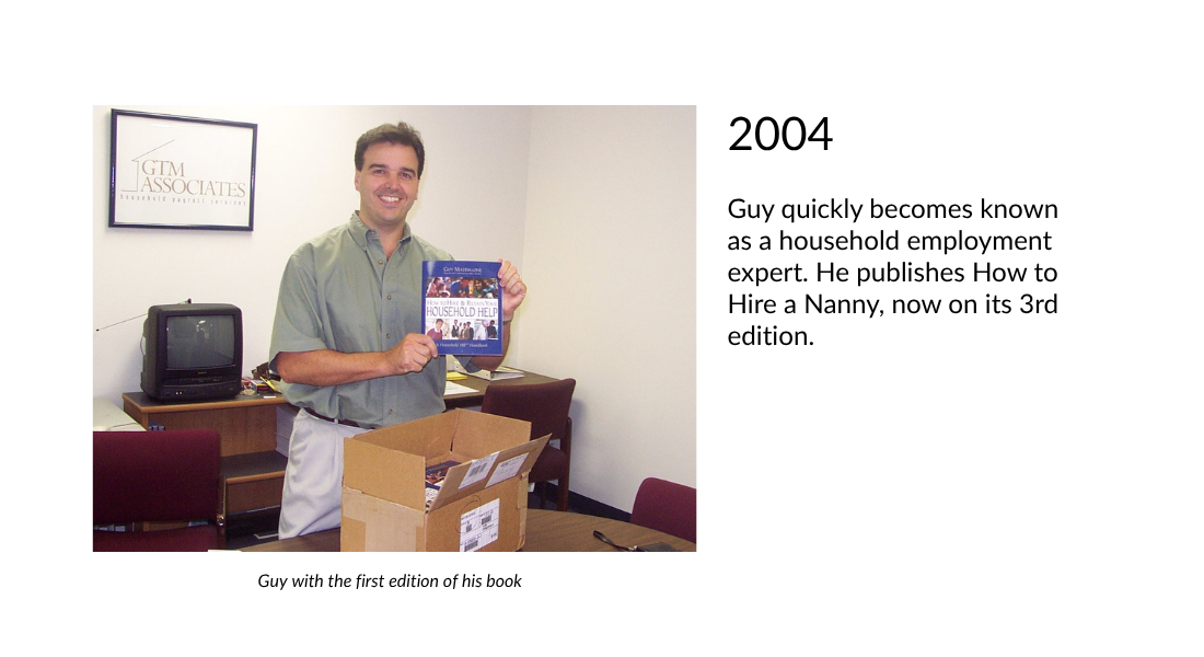 Guy quickly becomes known as a household employment expert. He publishes How to Hire a Nanny, now on its 3rd edition.
