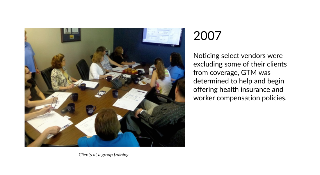 Noticing select vendors were excluding some of their clients from coverage, GTM was determined to help and begin offering health insurance and worker compensation policies.