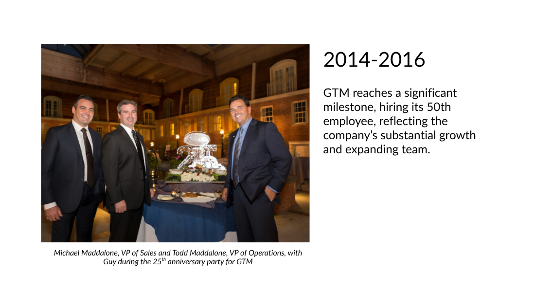 The GTM timeline demonstrates a powerful blend of unwavering persistence, innovative leadership, and a dedication to both clients and employees. All of this was achieved while maintaining a deep commitment to corporate social responsibility and charitable giving.